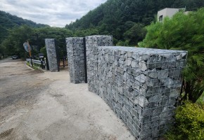 양평 펜션 입구 개비온담장
